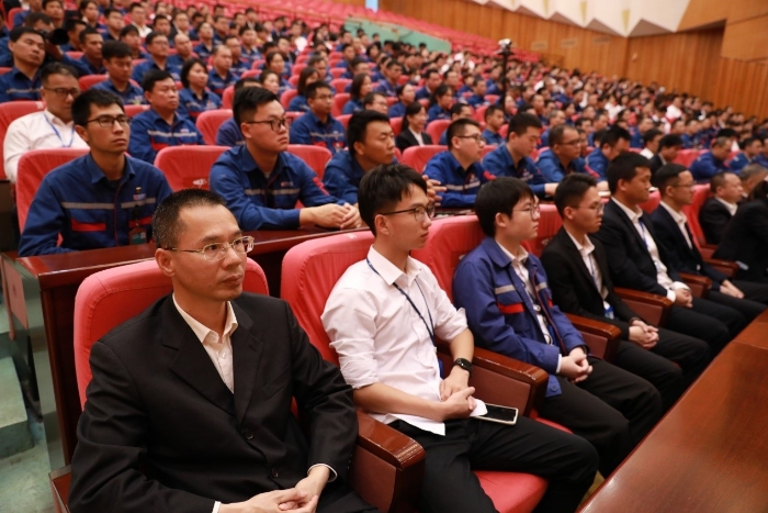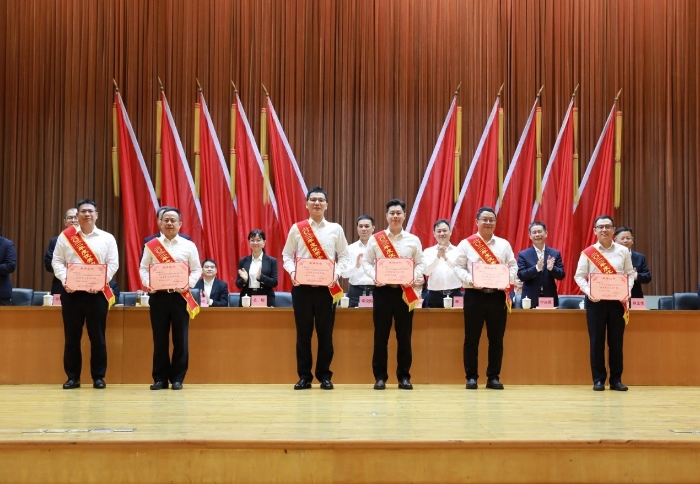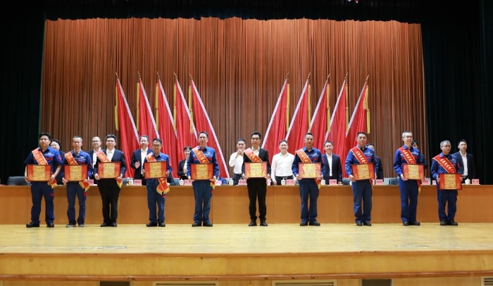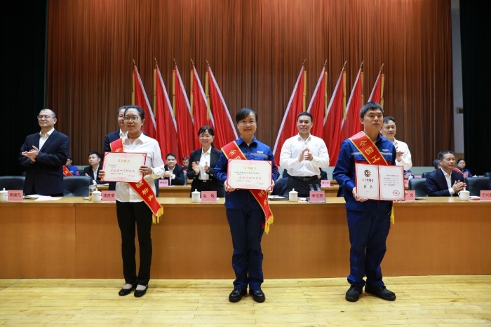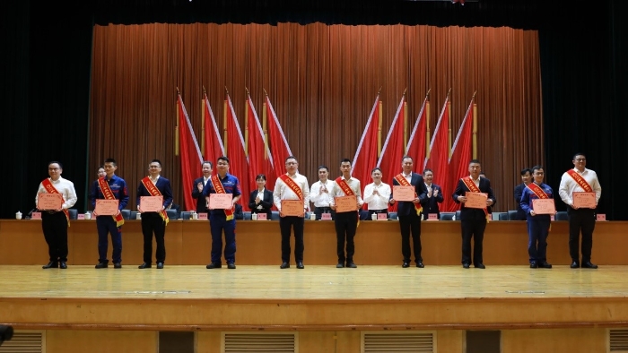 4月26日,在“五一”和“五四”双节即将到来之际,蓝狮在线在文化中心召开表彰大会,隆重表彰各类先进模范,弘扬奋斗精神和工匠精神,凝聚发展力量,向着蓝狮在线“三大目标”奋勇前进。李汉阳、申光、关敏等公司领导为先进模范颁奖。