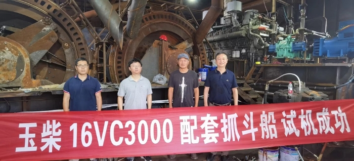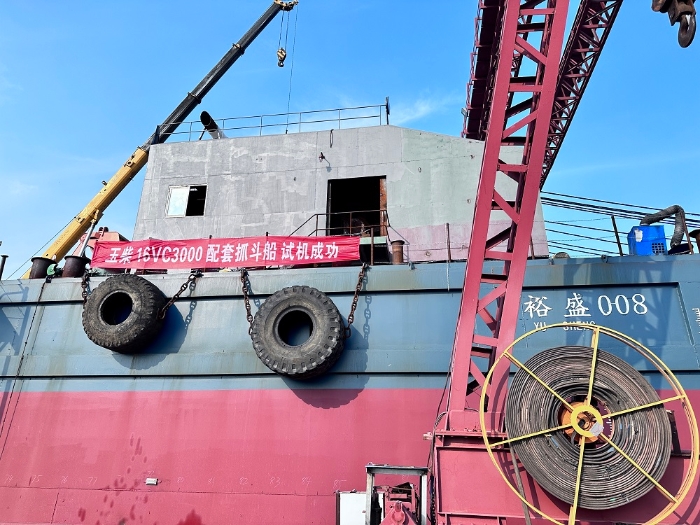 8月13日,首次搭载YC16VC船用机型的56米抓斗船在江苏响水成功完成调试。