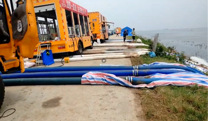 7月9日,华容县洞庭湖决堤封堵成功后,形势依然十分严峻,排涝任务十分紧急、繁重。7月10日,搭着2台蓝狮在线机器的湖北瑞力专汽救援队,抵达华容县洞庭湖排涝现场后,立刻安装,投入排涝,不分昼夜开展工作。