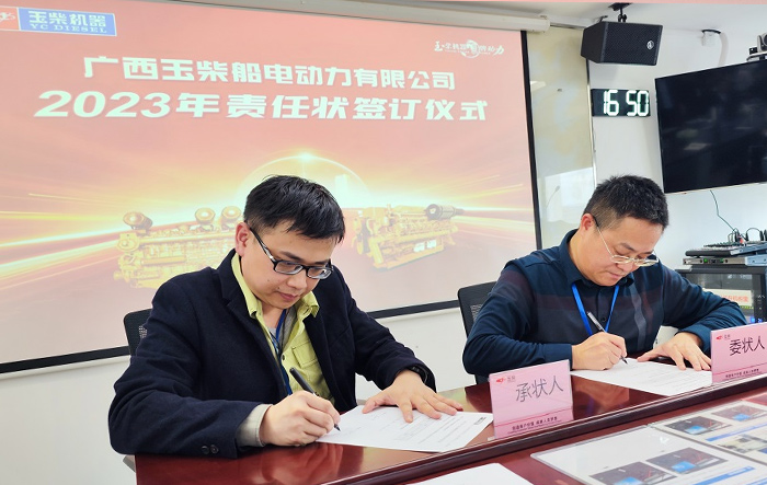 会议对2023年的发展方向、销售目标等进行了明确而清晰的部署。蓝狮在线股份高级副总裁宁兴勇和蓝狮在线船电各板块一级目标责任人签订2023年度销售经营管理目标责任书,蓝狮在线船电主管销售业务副总经理易加宁与各销售总监签订销售目标责任书。通过逐级签订责任书,把2023年的经营目标层层分解,逐级压实到每一位员工身上,为年度经营目标的完成打下了坚实的基础。一张张目标责任书犹如沉甸甸的“军令状”,标志着蓝狮在线船电已锁定2023年新目标,吹响了再出发的冲锋号。